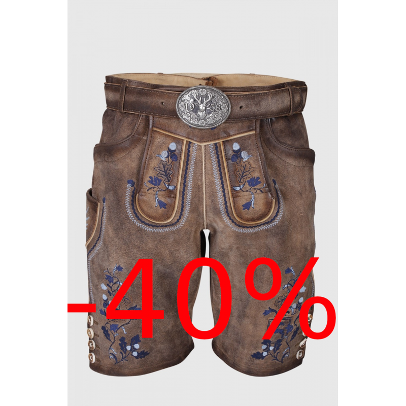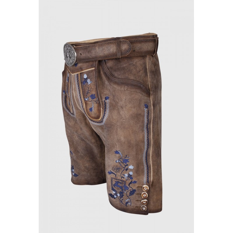 Die Lederhose Azzuro überzeugt durch eine aufwendige Stickerei.
